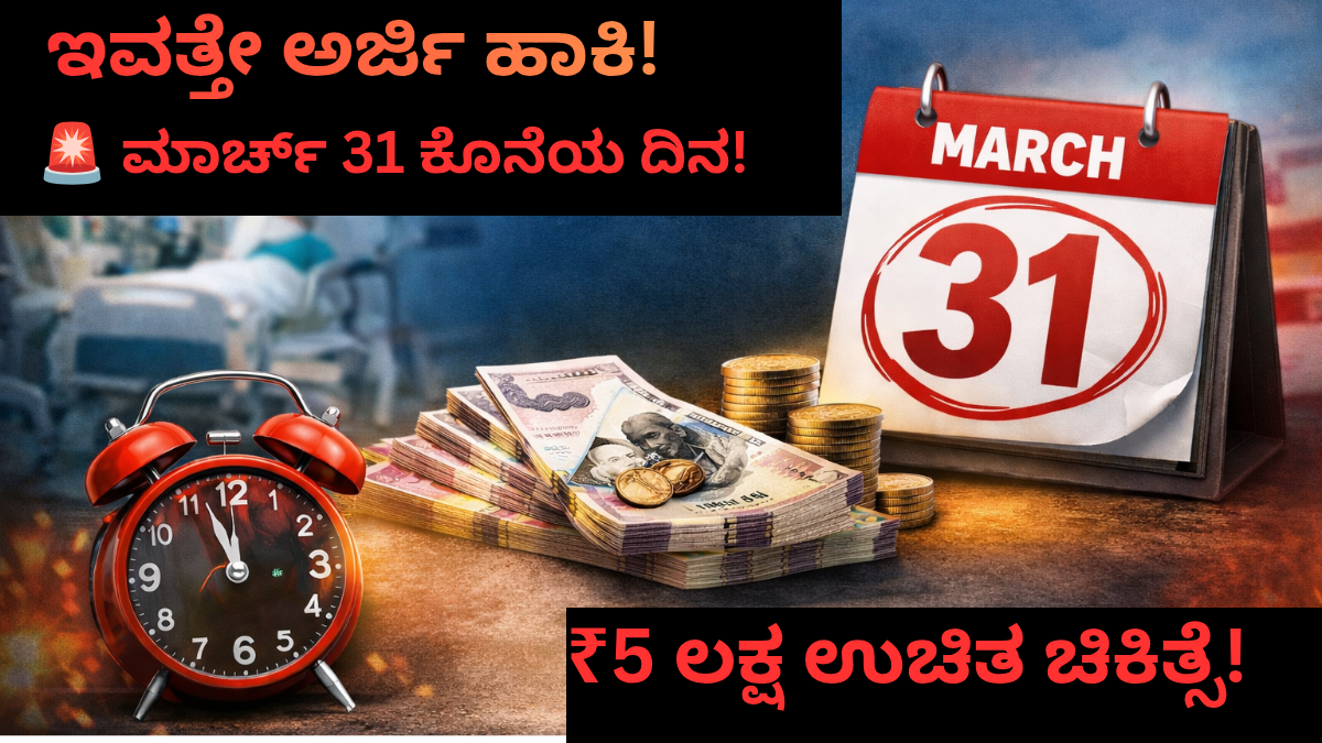 🚨 ತಕ್ಷಣ ಗಮನಿಸಿ! ಈ ಒಂದು ಕೆಲಸ ಮಾರ್ಚ್ 31ರೊಳಗೆ ಮಾಡದಿದ್ದರೆ ₹5 ಲಕ್ಷದವರೆಗೆ ಉಚಿತ ಚಿಕಿತ್ಸೆ ಅವಕಾಶ ಕೈ ತಪ್ಪಬಹುದು!